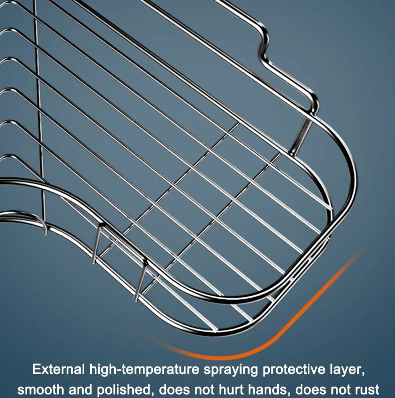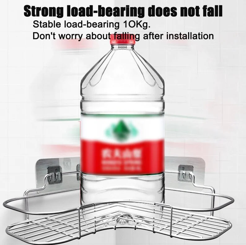 The corner shower caddy comes in an open-grid design for maximum air ventilation and water dripping away. Keep your bath products clean. The grid can prevent some small objects from falling. Our bathroom shelf can bear up to 30 lbs, DO NOT press the shampoo hard when you place it on the shower caddy. It might cause an exceeding the load-bearing limit.