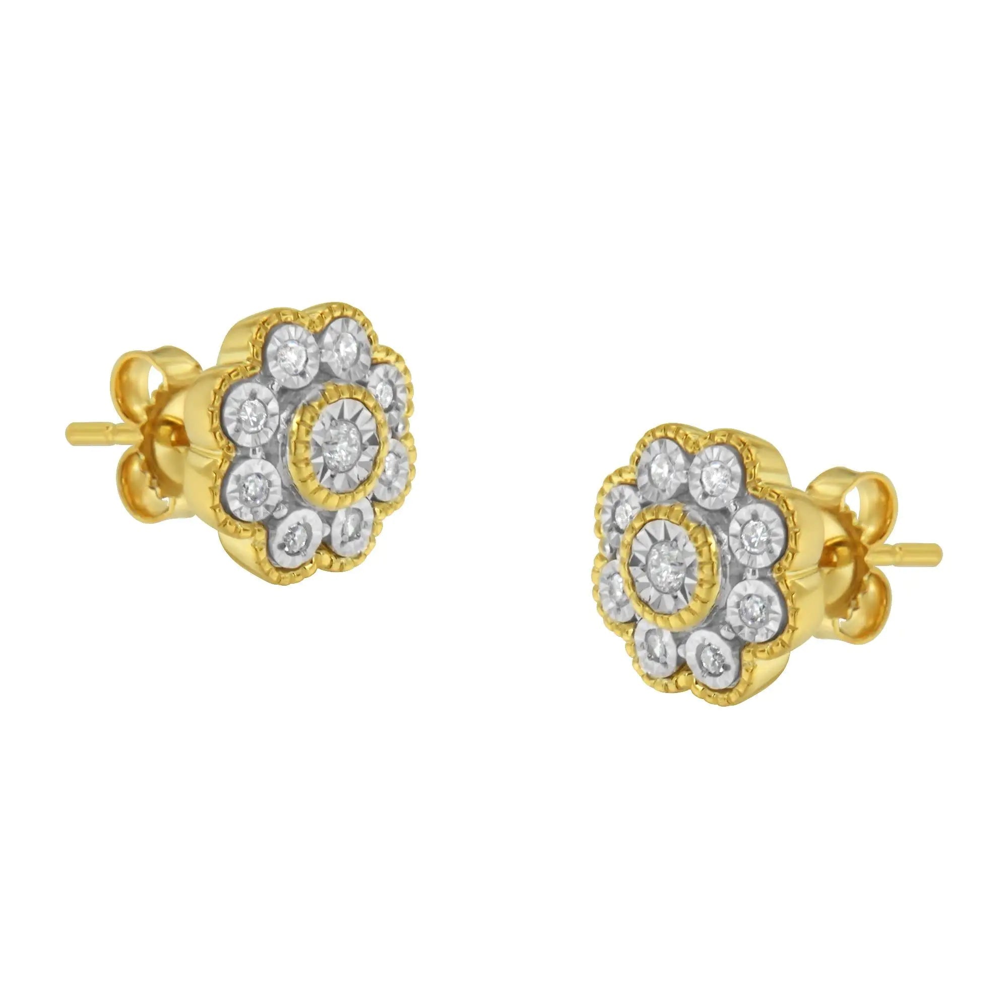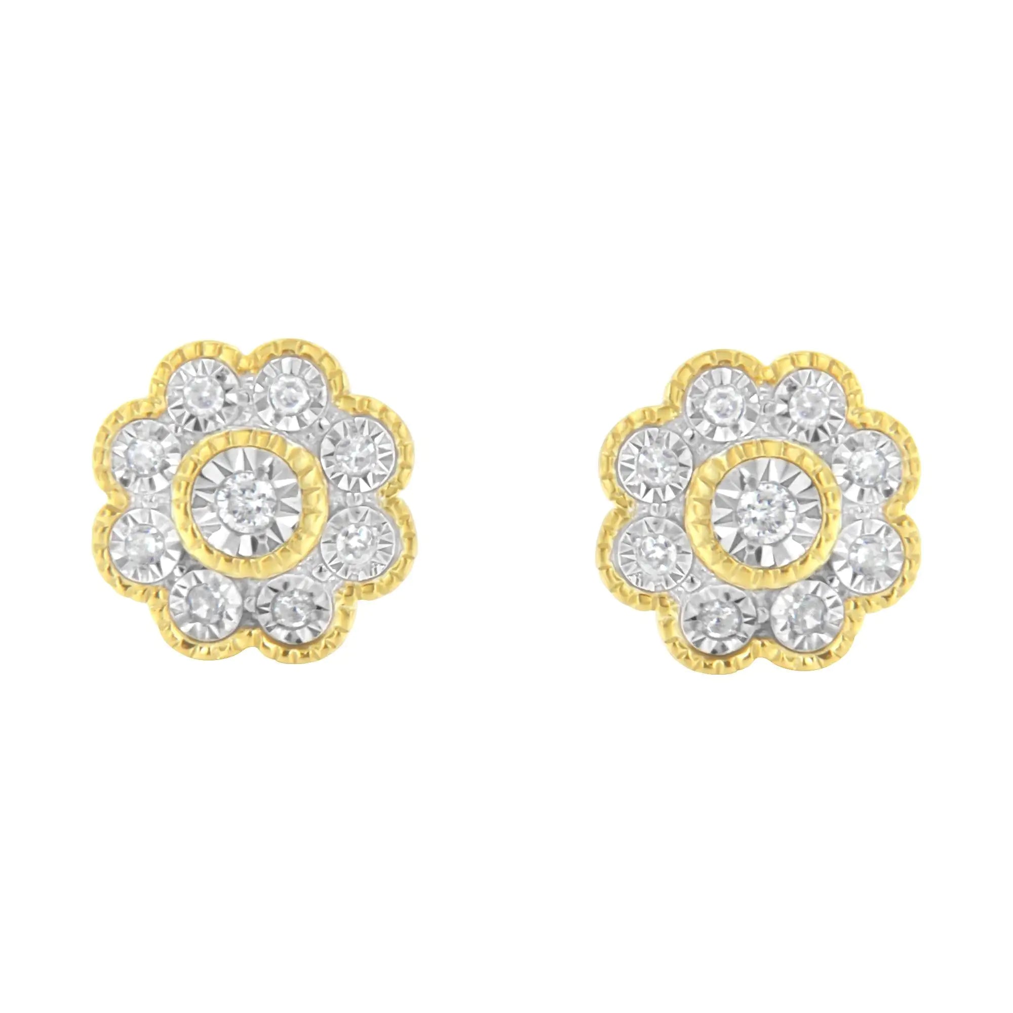 14K Yellow Gold Plated .925 Sterling Silver 1/6 Cttw Miracle-Plate Set Diamond Floral Stud Earrings (I-J Color, I2-I3 Clarity)