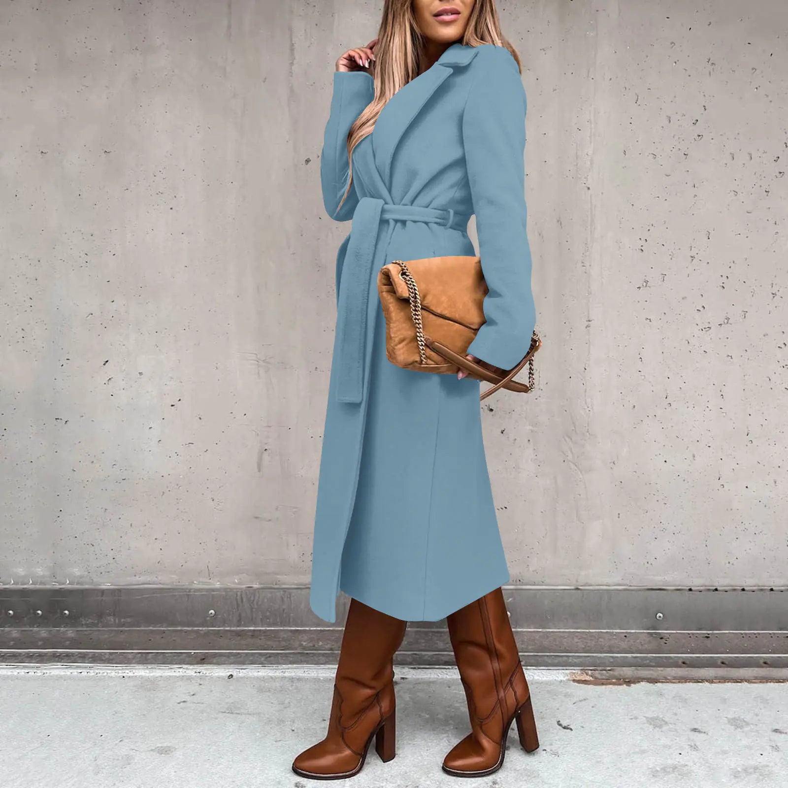 Crafted from high-quality wool blend, this coat features a sleek, long-line silhouette that provides ample warmth without compromising on style. Its minimalist design allows for versatile styling options, making it suitable for both casual outings and more formal occasions. Available in a variety of stunning colors like Apricot, Dark Gray, Light Blue, Blue, Brown, and Khaki, you can easily find the perfect shade to match your personal style.