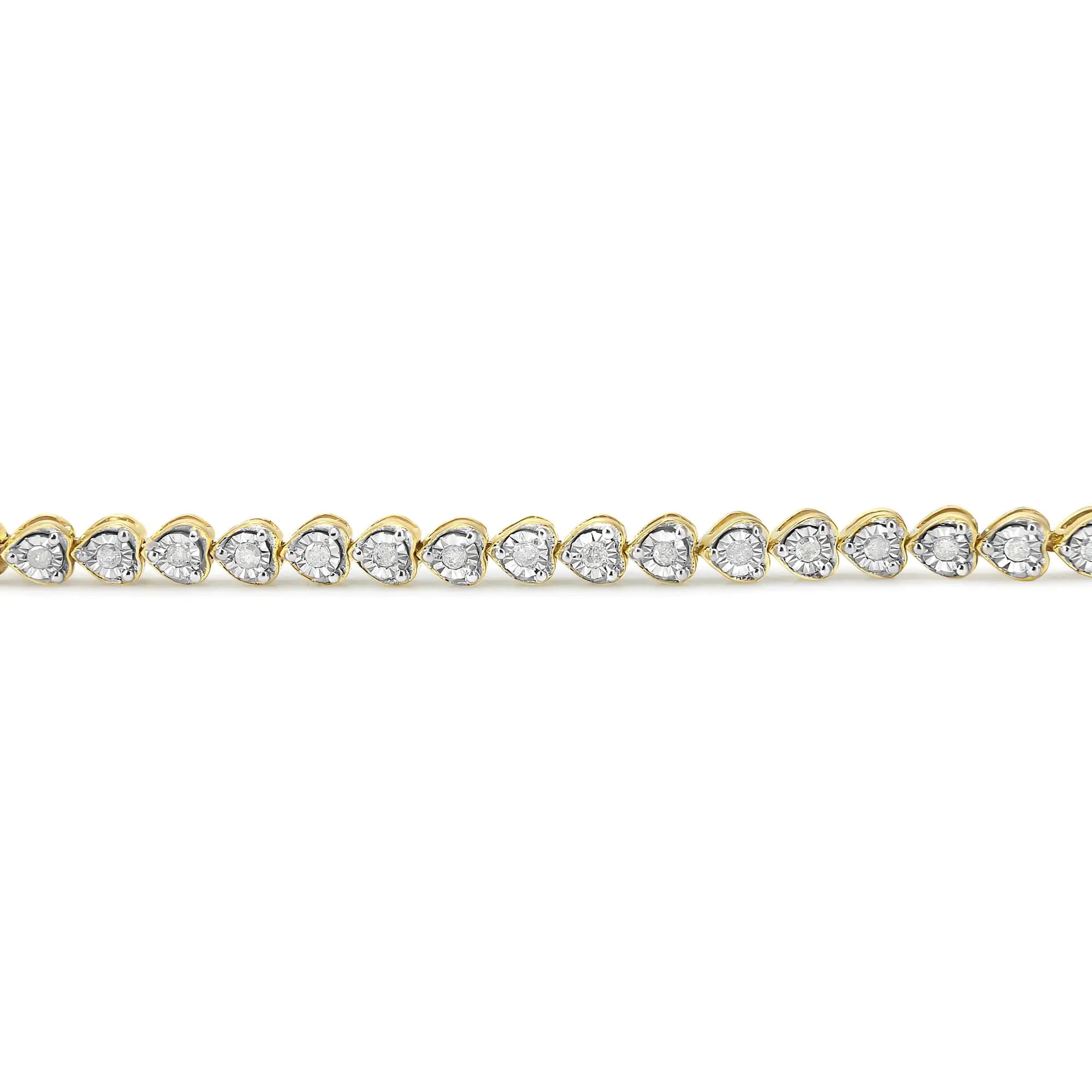 Create your signature look by wearing this elegant diamond tennis link bracelet. Featuring a seamless row of heart accents, adorned with rose-cut diamonds and set in a 10K rose gold plated sterling silver framing this bracelet has a classy appearance. This modern bracelet makes a perfect Valentine's Day gift, or as a unique twist on a promise ring; it's a classic romantic surprise she'll want to show off every day! Subtle yet dazzling, the bracelet comes with a sturdy clasp, which will allow this masterpiece to sit flat on your wrist.