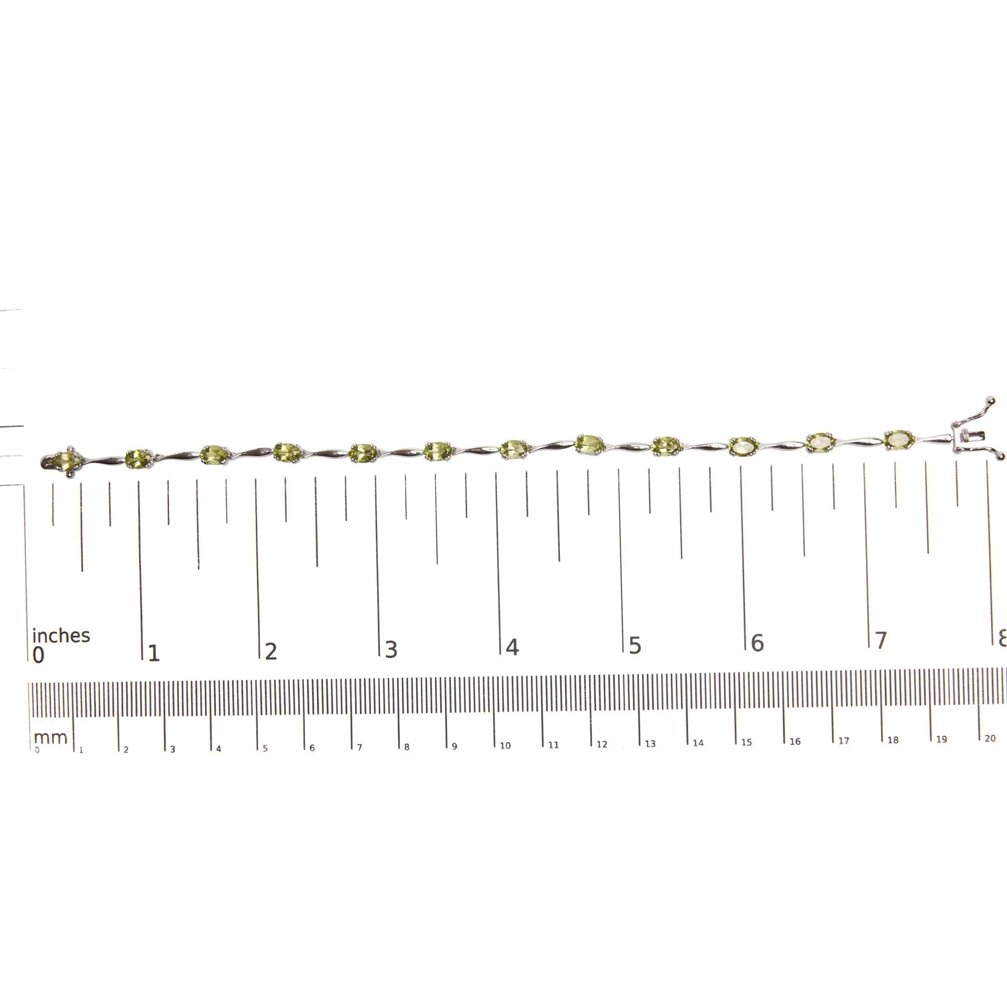 .925 Sterling Silver 5 1/2 Cttw Oval Shaped Created Green Peridot Link Bracelet - 7" Inches