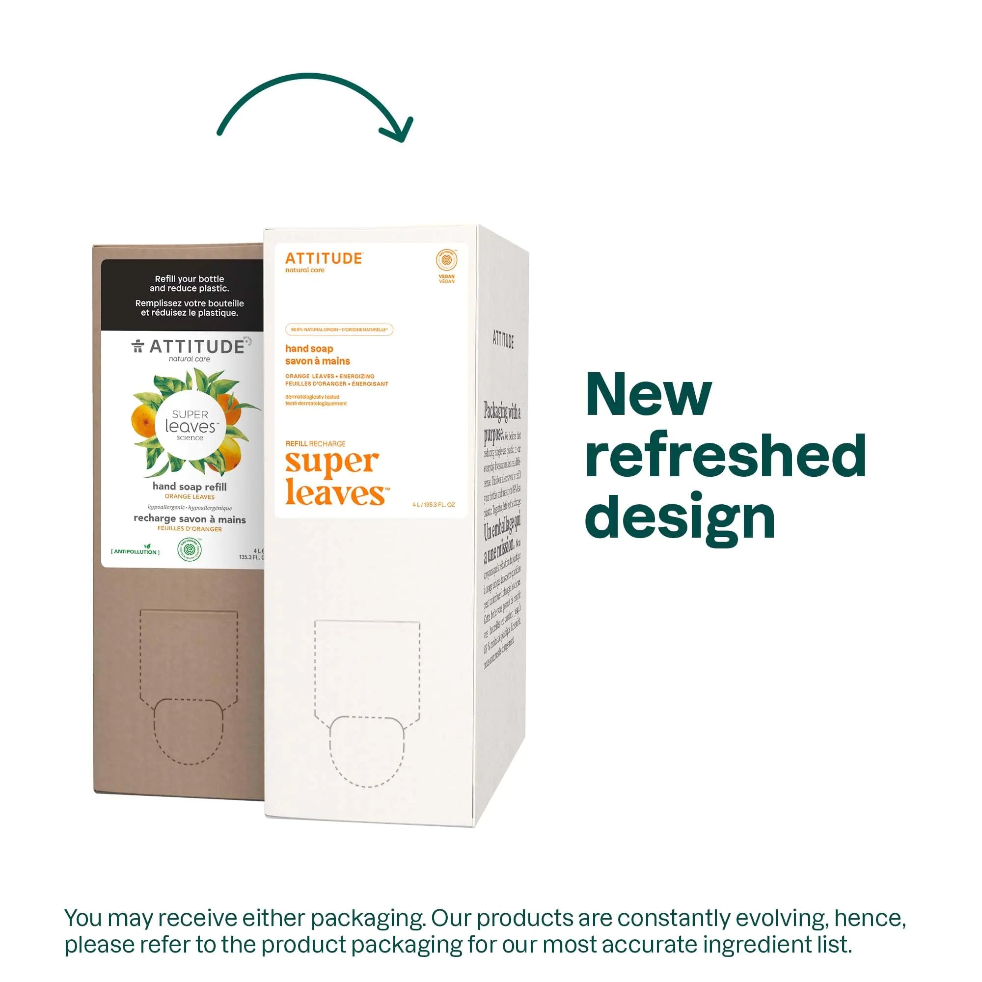 ATTITUDE™ vegan Energizing hand soap – orange leaves gently cleanses your hands. Formulated with 98.9% naturally sourced ingredients including orange leaves extract to restore skin’s suppleness and improve its appearance. EWG VERIFIED™ and dermatologically tested, this cleansing soap is enriched with watercress and Indian cress to revitalize skin and keep it healthy. Infused with a floral fragrance with orange blossom and eucalyptus notes, this soap eliminates impurities and makes hand washing a joy. Its eco-refill format is easy to use at home. According to ISO 16128.
