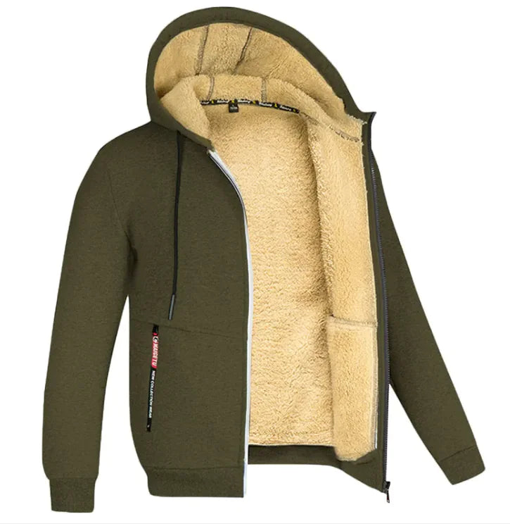 Stay warm and stylish with the Hooded Fleece Plus Thick Lamb Fleece Cardigan Sweater. Featuring ultra-soft lamb fleece lining and a comfortable hooded design, this cardigan offers ultimate coziness for chilly days. Ideal for layering, it combines casual style with premium warmth.